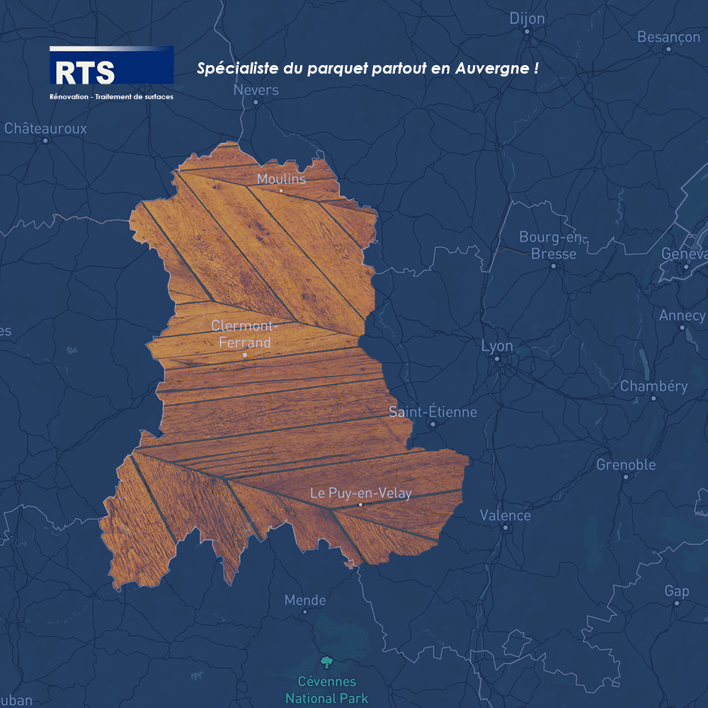 RTS Auvergne intervient pour tous types de parquets sur l’ Auvergne de Clermont-Ferrand à Vichy, Montluçon, Moulins, Riom, Issoire, Aurillac, Brioude, le Puy en Velay, Ambert, Vic-le-Comte, Cournon d’Auvergne, Champeix, Mende, Chamalières, Thiers, Aubière, Gerzat, …